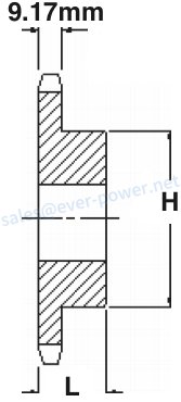 | Sprocket Size | Tooth Count | Pitch Diameter | Stock Bore | Max. Bore | Hub Diameter (H) | Length Thru Bore (L) | Weight (kg) |