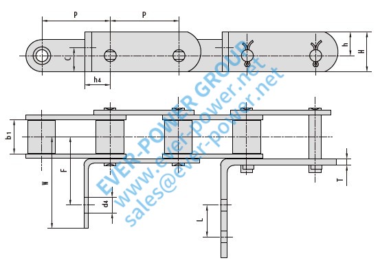 | Chain No. | P | b1 | C | h | H | h4 | F | L | W | T | d4 |