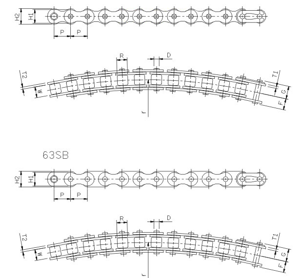 | MAXTOP CHAIN NO. | Pitch | Width | Roller | Plate | Pin | Min | Average | Approx Weight | ||||||