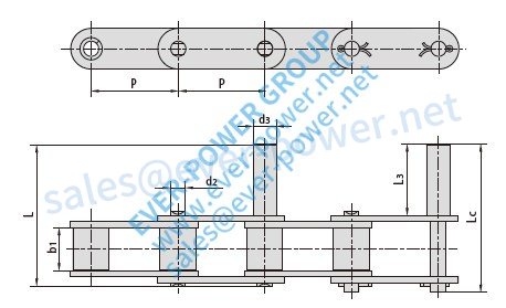 | Chain No. | P | b1 | d2 | d3 | L3 | L | Lc |