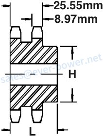 | Sprocket Size | Tooth Count | Pitch Diameter | Bushing Number | Bushing Max. Bore | Dimension (L) | Dimension (H) | Sprocket Weight (kg) | Bushing Weight (kg) |