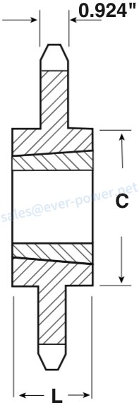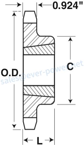 | Sprocket Size | Tooth Count | Bushing | Outside Diameter | Pitch Diameter | Max. Bore | Dimension (L) | Dimension (C) | Type | Weight (LBS) |