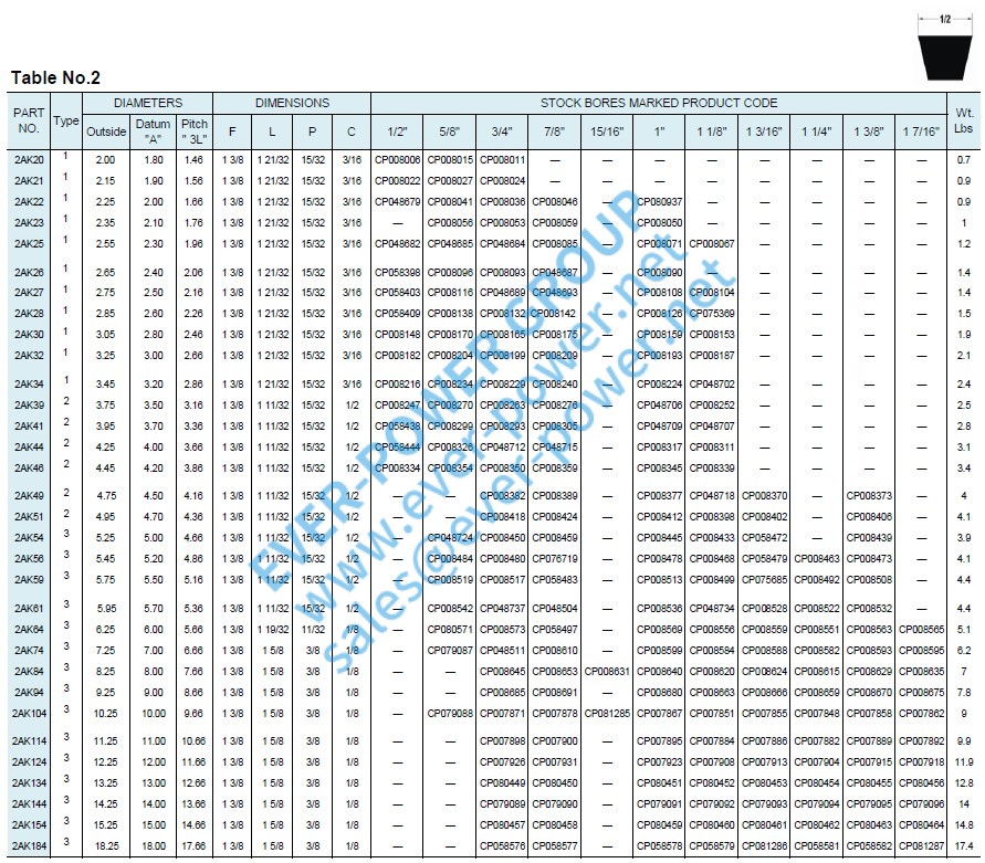 “3L”皮带可以与下表中的这些滑轮一起使用