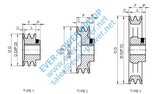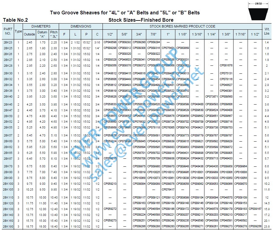 用于“4L”或“A”带和“5L”或“B”带的两个槽滑轮