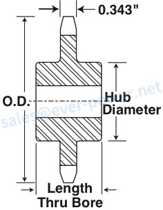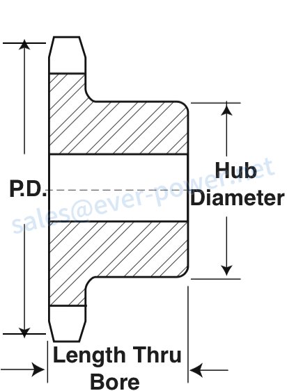 | Size | Tooth Count | Outside Diameter | Type | Stock Bore | Maximum Recommended Bore | Hub Diameter | Length Thru Bore | Weight (LBS) |