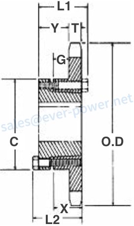 - B-Hub - 60 B-Hub sprockets utilize a hub on one side, this makes it possible for the sprocket to have a key-way and set-screws.