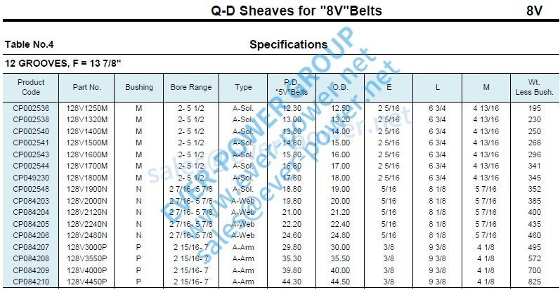 用于“8V”皮带的Q-D滑轮