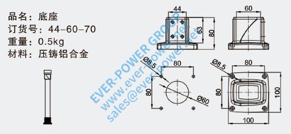 该系列悬臂组件与44x60m铝管配合,用于悬挂或支撑光控制箱。铝管的表面是塑料喷涂的,并且组件全部通过铝合金压铸制造。铝管通过螺钉内部连接固定。整体简单,可靠,安全。