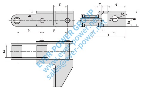 | 链条编号。 | P | b1层 | C | H | H | G | h4型 | F | W | T | d4级 |
