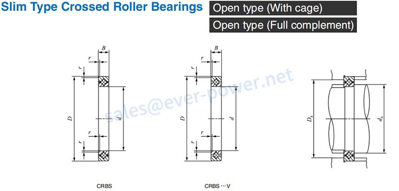 CRBS series: Slim Type crossed roller bearing, with extremely thin inner and outer rings.
