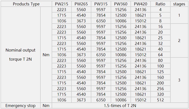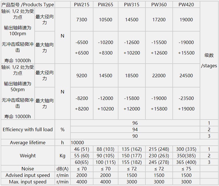 | 产品类型 | PW215. | PW265. | PW315 | PW360 | PW420 | ||||||||||||
