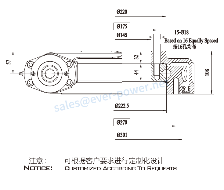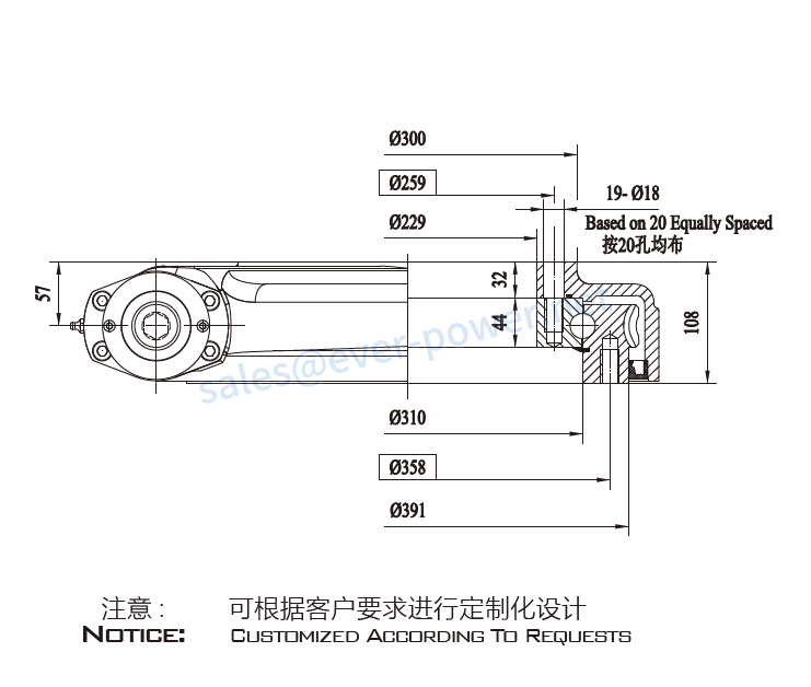 Our slewing drives are available in a large variety of standard design sizes. We will gladly develop a slew drive tailored to your requirements if you are looking for an individual solution.