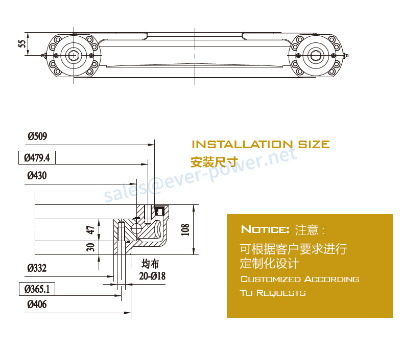 | Raceway diameter | 222 mm up to 640 mm (9 in up to 25 in) |