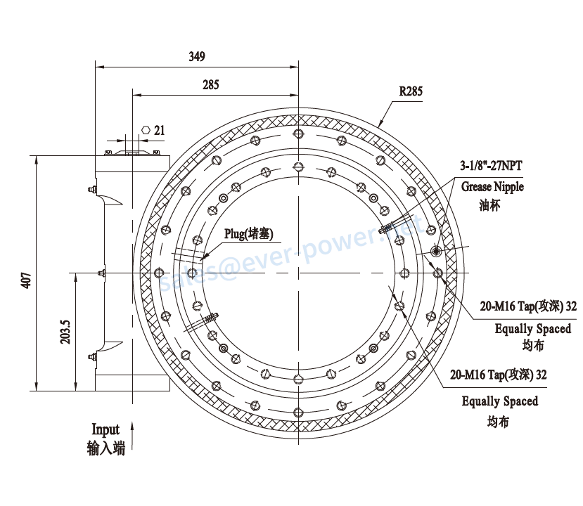 答:电动或液压马达is the prime mover for slew drive.