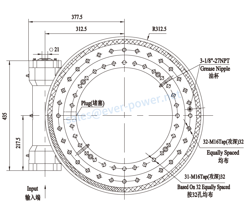 ①Installation preparation: check whether the slewing drive is physically damaged; Clean slewing drive and connecting bracket; Clean the supporting surface of impurities (such as scrap iron, burr, paint, welding slag, etc. ).