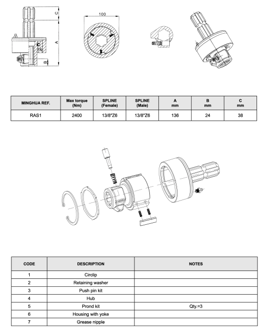 农业动力传动轴用自由轮(RAS1)