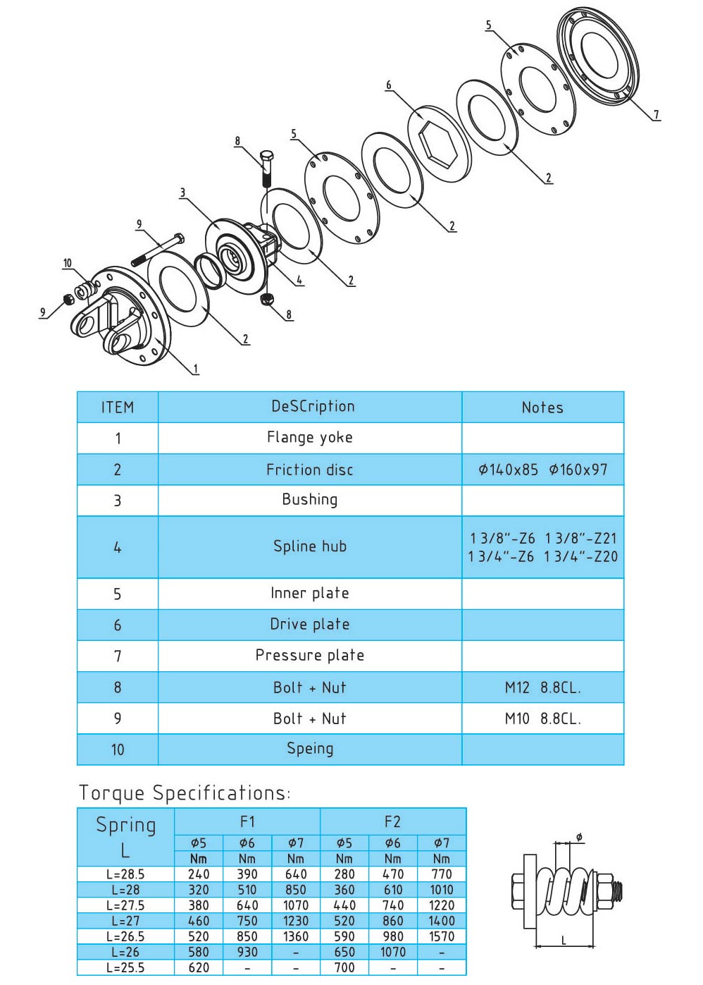 当设定扭矩超过校准扭矩时,扭矩限制器被激活。在扭矩峰值限制阶段,离合器继续传输功率。离合器是有用的一个安全装置tp防止负载峰值和启动机器与高转动惯量。建议确保整定值正确,避免摩擦盘过热(整定不足)或离合器卡住(整定过度)。