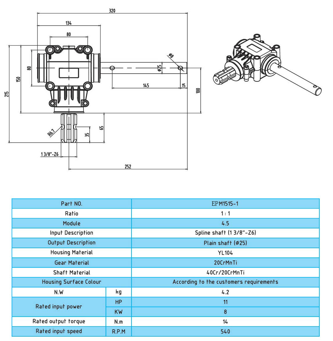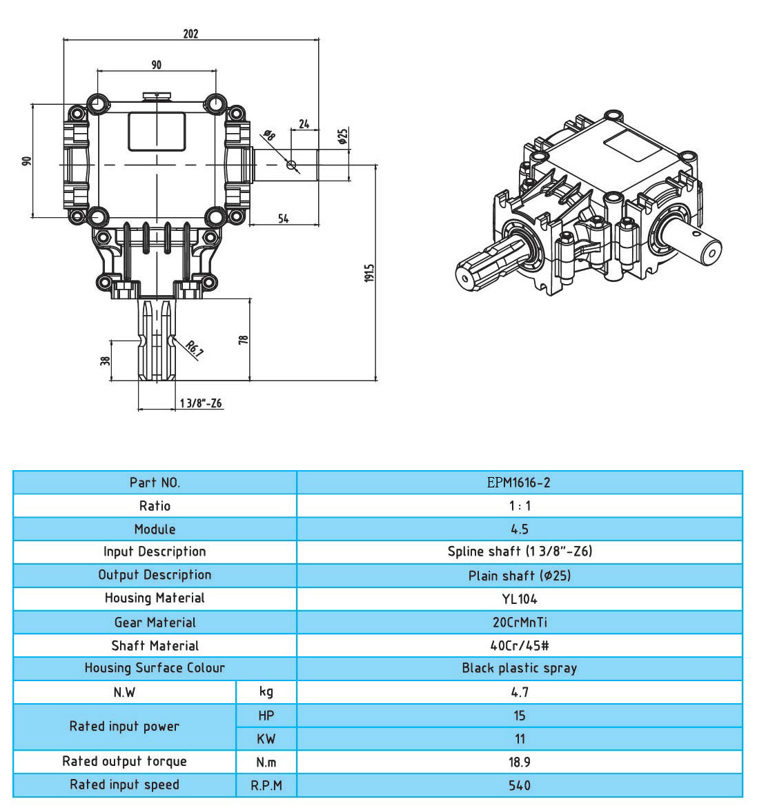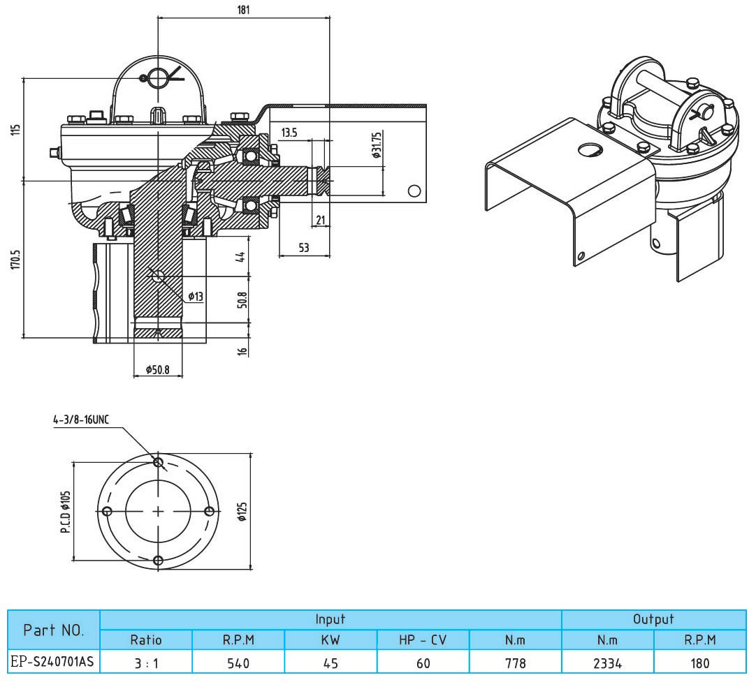 用于PTO驱动轴的齿轮箱