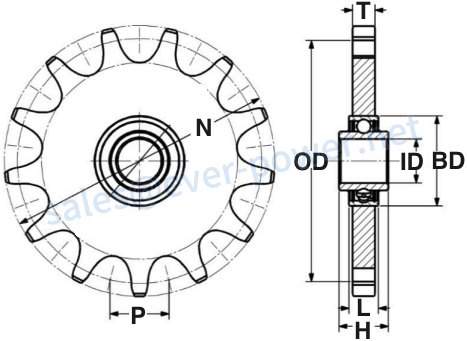 | Sprocket Size | Tooth Count | (OD) | (N) | (T) | (ID) | (BD) | (H) | (L) | Weight (kg) |