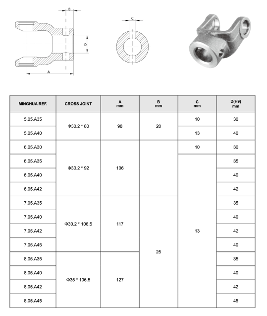 普通钻孔轭是农业PTO轴的一个针孔