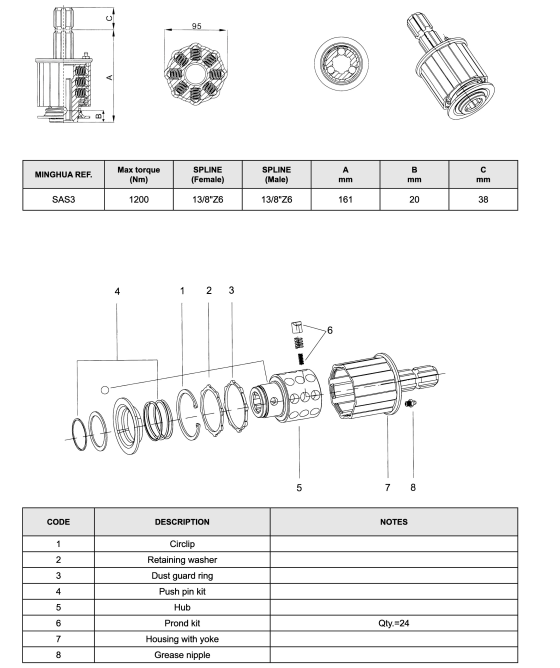 农业PTO轴的棘轮扭矩限制器(SAS3)