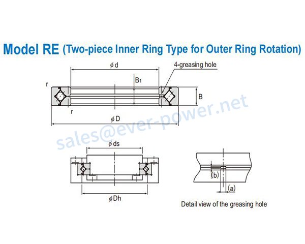 RE series crossed roller ring is one kind of the precision industries bearings. It is another basic model based on the design principle of theRB series. Their significant dimensions are the same as the RB series. However, the construction is different, its inner ring is split, and the outer ring is integrated with the main body. Therefore, unlike the RB series, RE series crossed roller bearings are suitable for precision industries that request a high accuracy of outer ring rotation.
