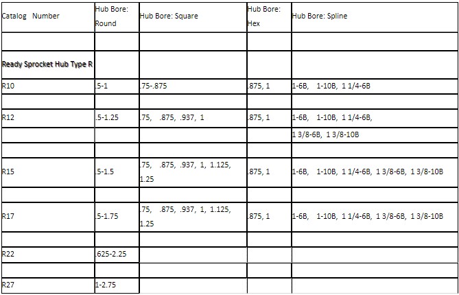 准备链轮是各种各样的链轮和轮毂钻和攻丝简单,方便的装配与标准六角头帽螺钉。对于35号到100号链,带成品孔轮毂,以适应轴尺寸通过2-3/4″直径,加上各种方形,六角,花键,和锥形键孔。