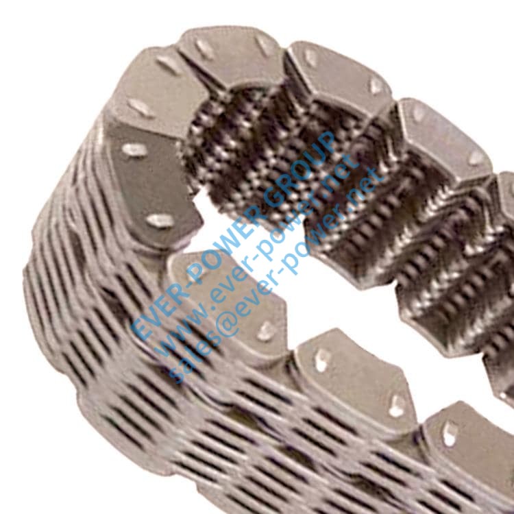 工业用传动滚子链;工业和农业机械,包括输送机、拉丝和拉管机、印刷机、汽车、摩托车和自行车。它由一系列由侧杆连接在一起的短圆柱滚子组成。它是一种简单、可靠、高效的电力传输方式。