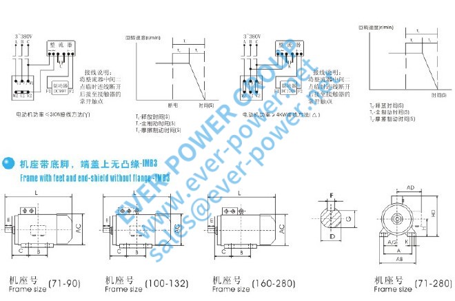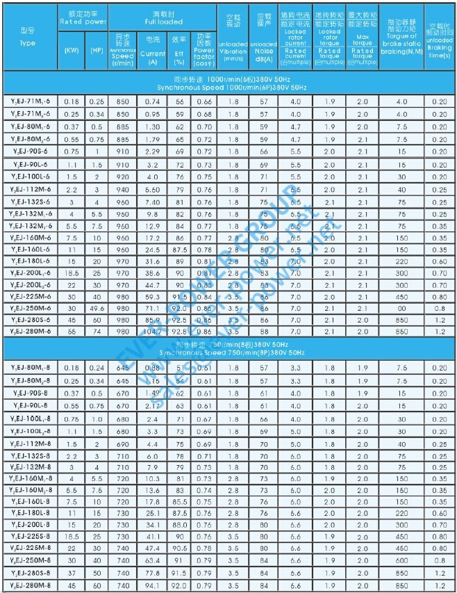 Y2EJ系列(IP54)电磁制动三相异步电动机是由Y2系列(IP54)三相异步电动机衍生而来。帧号为63 ~ 250帧,共12帧。功率范围为0.12 ~ 45KW。电极号有2.4.6.8共68种规格。本系列电动机的功率等级、安装尺寸、绝缘等级、工作方式、冷却方式及使用条件与Y2系列相同。执行标准为JB/T8680-2008《Y2系列(IP54)三相异步电动机>技术条件》,该系列电动机按Q/HD J01-2008《Y2EJ系列(IP44)电磁制动三相异步电动机>技术条件》执行。