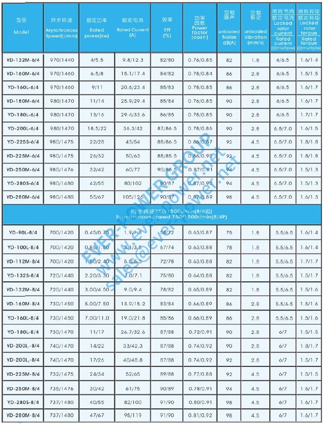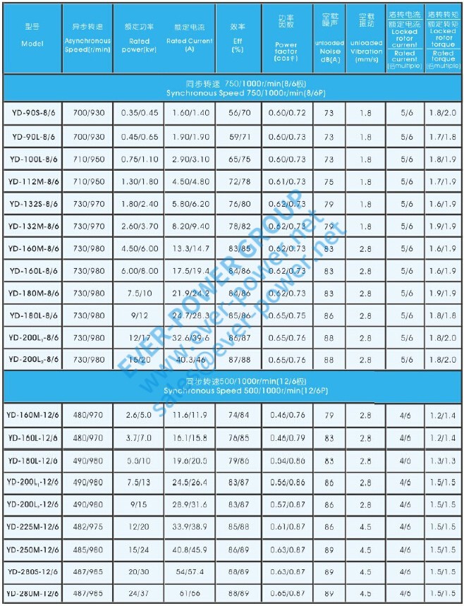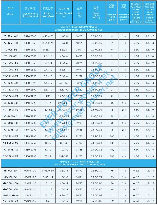 YD系列(IP54)电极变化,多速三相异步电动机来自Y2系列(IP54)三相异步电动机。它利用改变定子绕组连接方法来改变电极数而不是使用单个或双绕组来改变电极数。