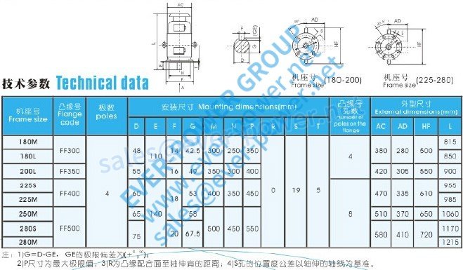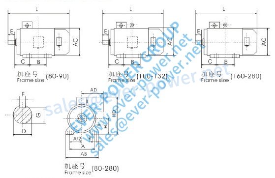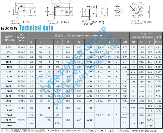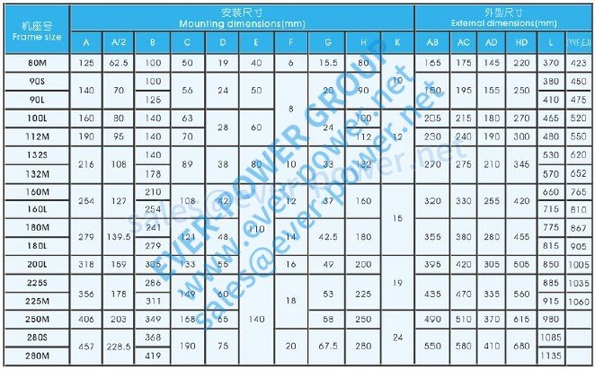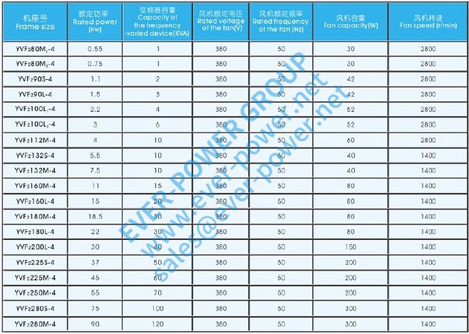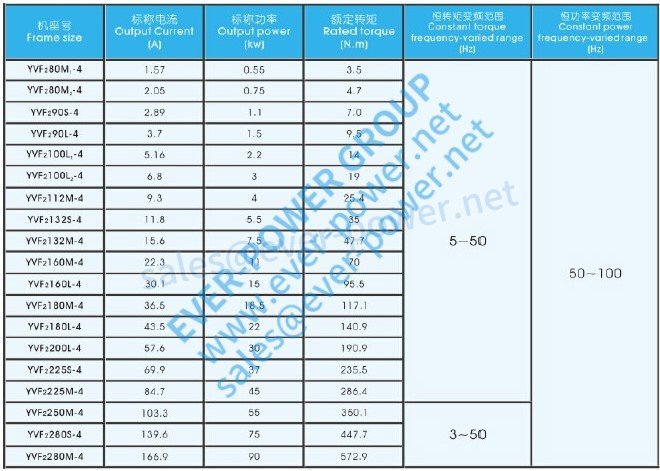 目前,我们的工厂在框架号为80到280,完全11帧号和19规格的框架号。该系列电机根据JB / T7918-2014 YVF2系列(IP54)三相异步电动机的应用条件: 1).elevation:低于1000米。 2)。杂散温度:-15℃≤θ≤40℃ 3)。相关湿度:不高于9% 4)。操作模式:S1 5)。Sillution度:F 6).rated电压:380V 7)。频率:50Hz 8).Cooling方法:IC416