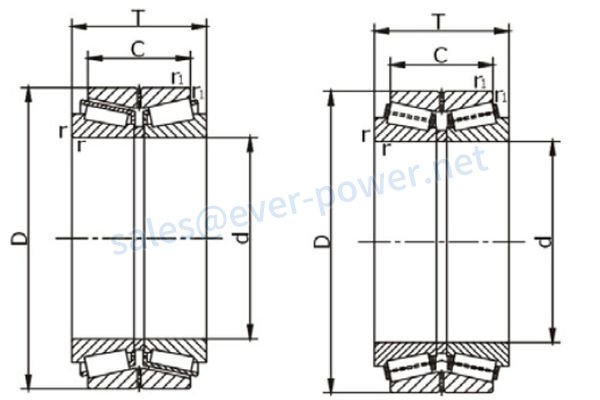 TDO Type double row inch size tapered roller bearings are a common type of tapered roller bearings. It has a one-piece (double) outer ring and two single inner rings. TDO Type double row inch tapered roller bearings are usually supplied with an inner-ring spacer as a pre-set assembly. This configuration gives a wide practical bearing spread and is frequently chosen for applications where overturning moments are a significant load component. TDO bearings can be used in fixed (locating) positions or allowed to float in the housing bore, for example, to compensate for shaft expansion. TDO CD outer rings also are available in most sizes. These outer rings have holes in the O.D. that permit the use of pins to prevent external ring rotation in the housing.