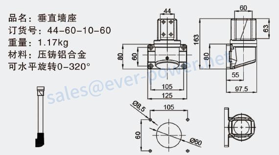 该系列悬臂组件与44x60m铝管配合,用于悬挂或支撑光控制箱。铝管的表面是塑料喷涂的,并且组件全部通过铝合金压铸制造。铝管通过螺钉内部连接固定。整体简单,可靠,安全。