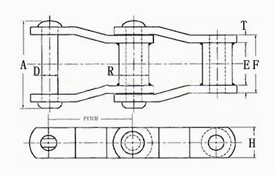 | 链。 | 平均音高 | E(毫米) | 侧边栏 | 销 | F(毫米) | Min.Ult。强度(l < N) | ||