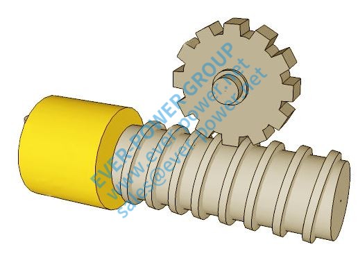 上面看到的齿轮的排列称为蜗轮和蜗轮。在这个例子中,蠕虫的颜色是棕色的,只有一颗牙齿,但它像一根螺纹。蜗轮,黄色,像一个正常的齿轮或正齿轮。蜗杆总是驱动蜗轮旋转,而不是相反的方向,因为系统趋向于锁住和堵塞。