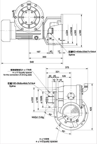 | 类型 | C.D.(mm) | 比率 | 输入功率(千瓦) | 输入速度(r / min) | 传输效率(%) | 允许工作油温度(℃) |