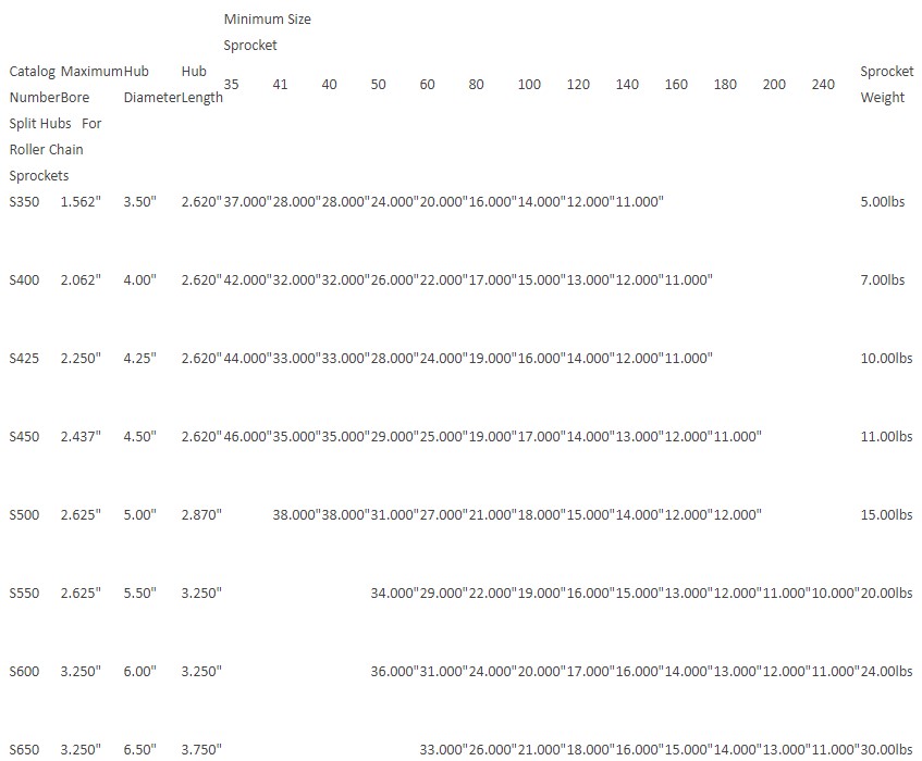 SPLIT HUBS FOR ROLLER CHAIN SPROCKETS