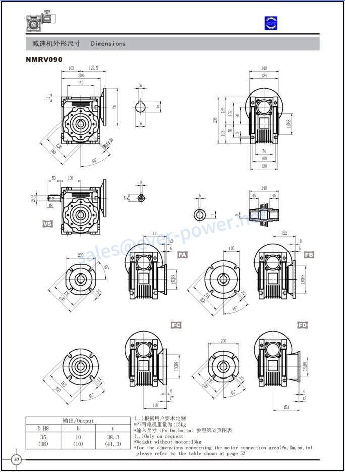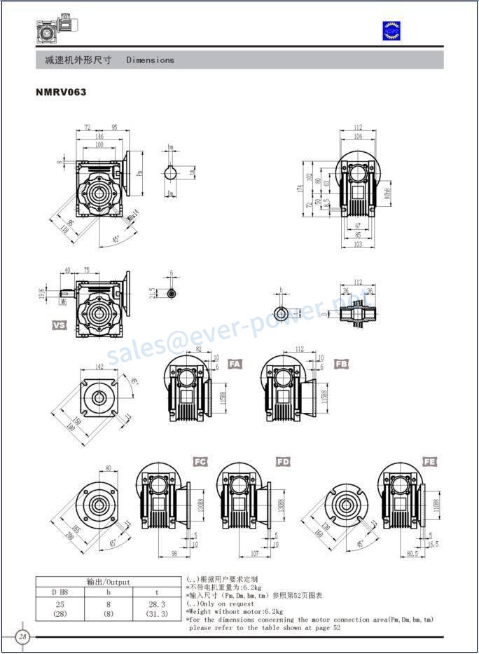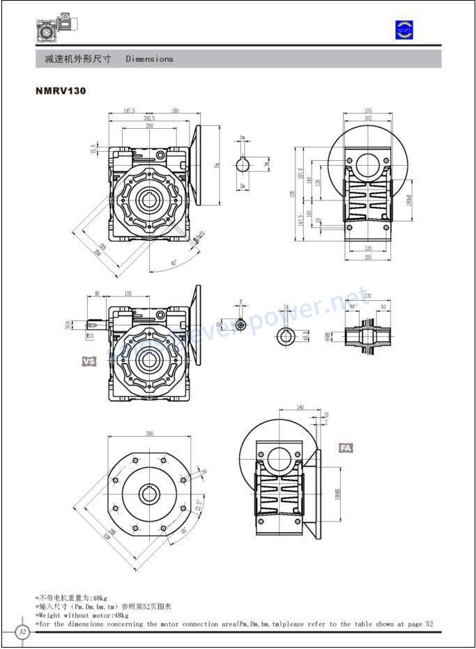 Worm Reducers NMRV Dimensions