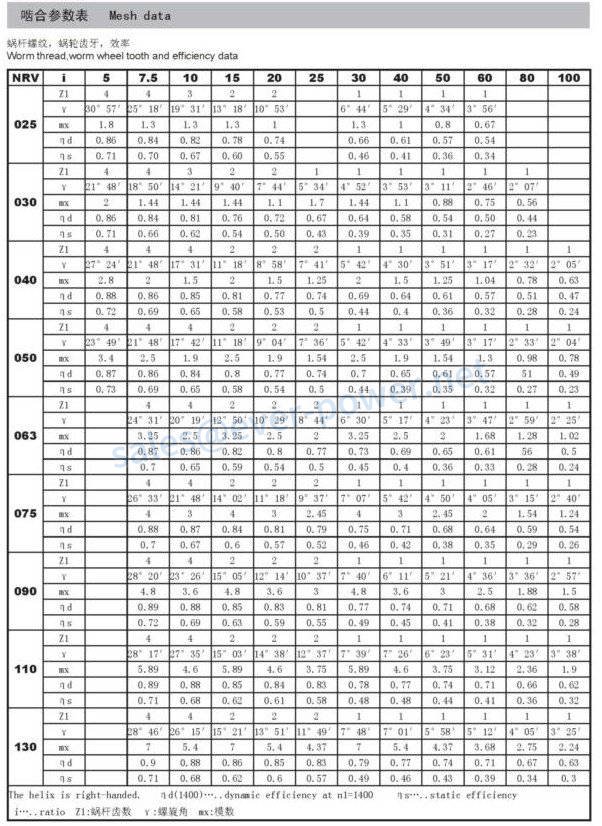 Worm Reducers NMRV Performance
